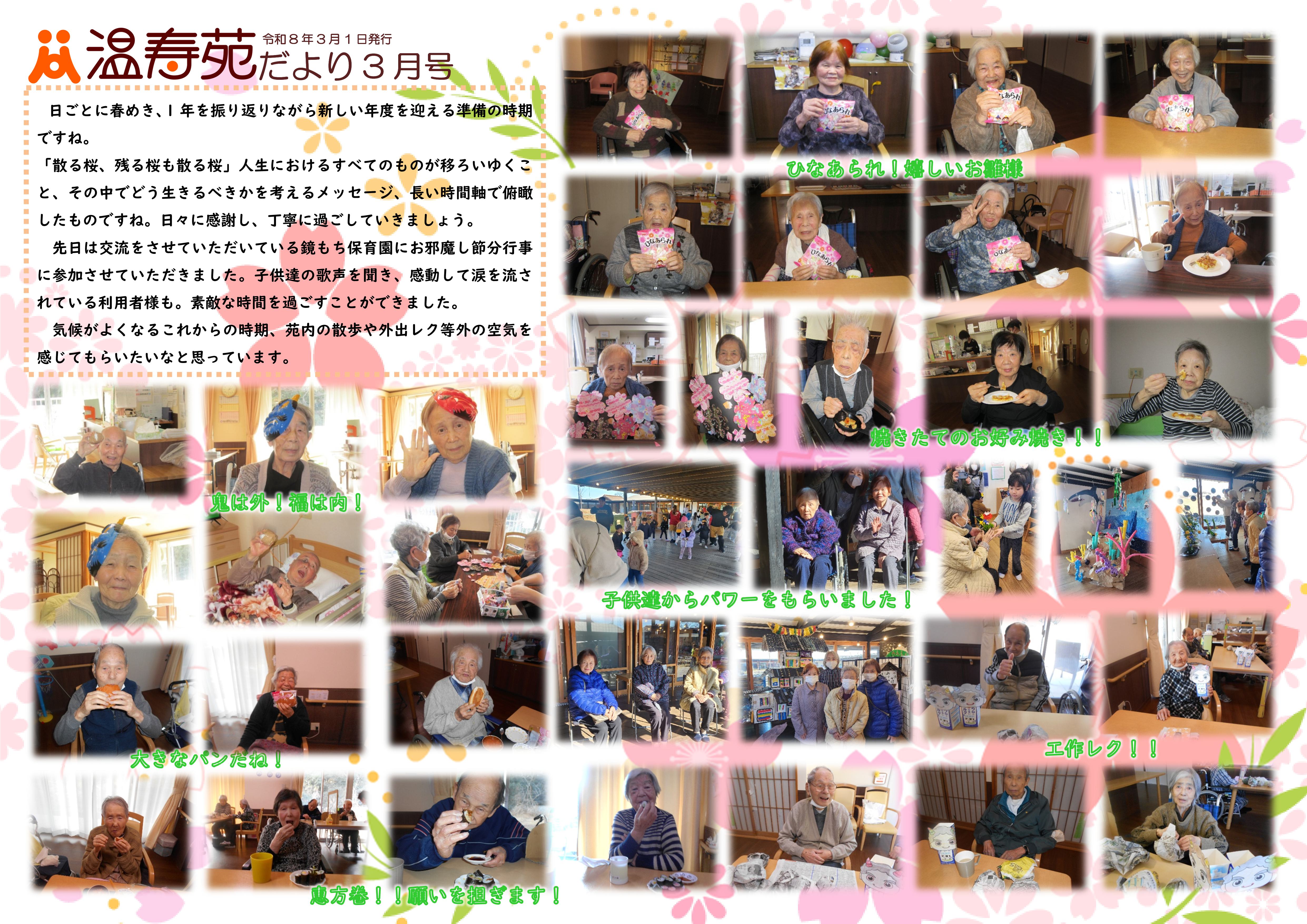温寿苑だより 令和7年3・4月号を掲載しました。